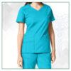 Descripción: Uniforme de dos piezas con broches decorativos, blusa cuello en V con breteles para mejor entalle y bolsillos inferiores dobles, pantalón de elástico con cintura elástica ancha, cordón ajustable, multibolsillos.