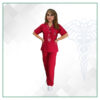 Descripción: Uniforme de dos piezas combinado, blusa cuello alto con cruce, dos bolsillos inferiores sobrepuestos, vivos en contraste en cuello, pantalón de elástico con cordón ajustable.