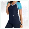 Descripción: Uniforme de dos piezas, blusa cuello en V combinada a 3 colores,bolsillos inferiores dobles, pantalón de elástico con cintura elástica ancha cordón ajustable, multibolsillos